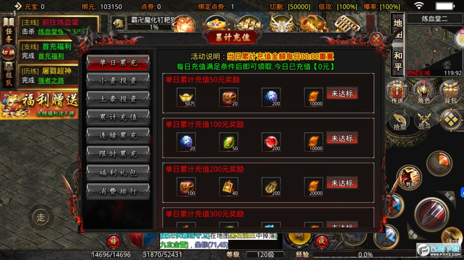 2、装备全靠玩家自己打,小怪就可以爆终极,屠龙刀上线就送,装备秒回收,每天限时活动等你尽情参加!