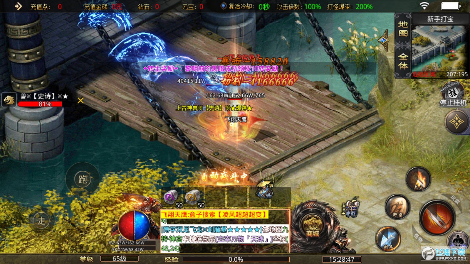 1.大量的副本等你来挑战,击杀BOSS掉落不同等级的装备道具,一键回收,自由交易,轻松打金。