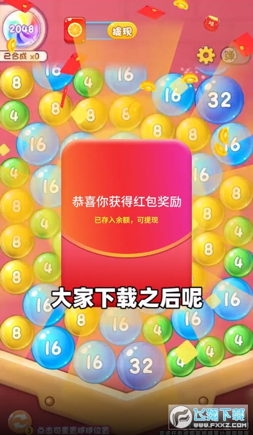 3、你需要灵活的操作,掌握好力度,让泡泡叠加在一块,到达2048就可以;