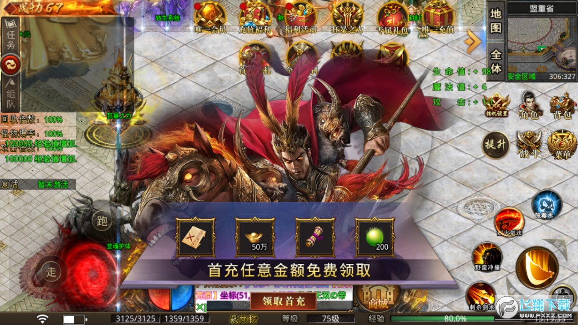 3、游戏地图进入无限制,游戏内道具元宝怪物全爆。