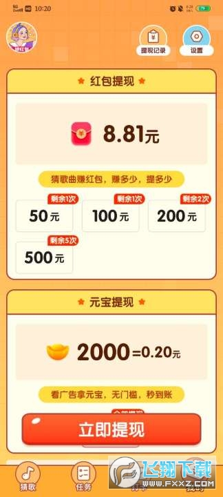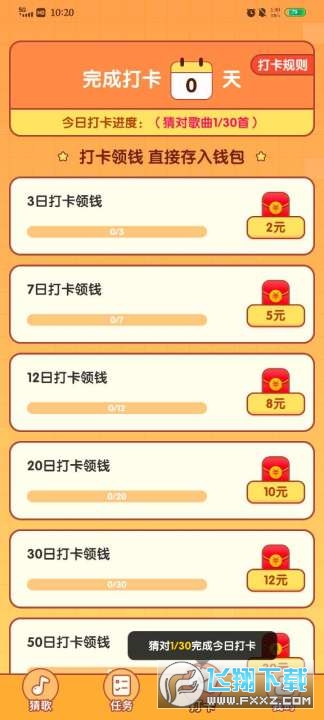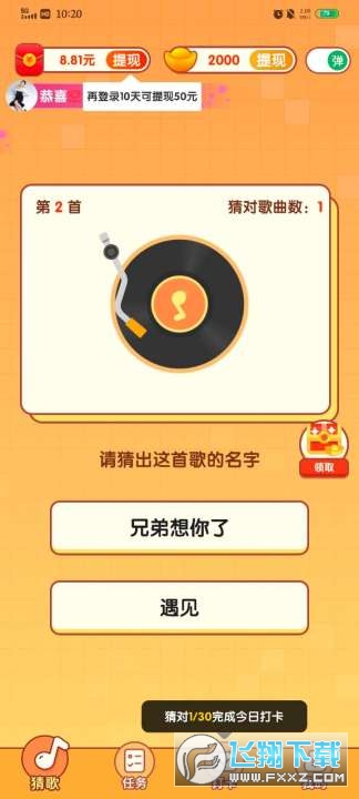 3、简洁清晰的界面,一键开启趣味的猜歌闯关,畅快挑战。