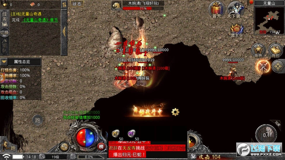 3、超便捷的挂机模式,让你在忙碌之中也能够获得收益,角色会自动战斗和获取道具。