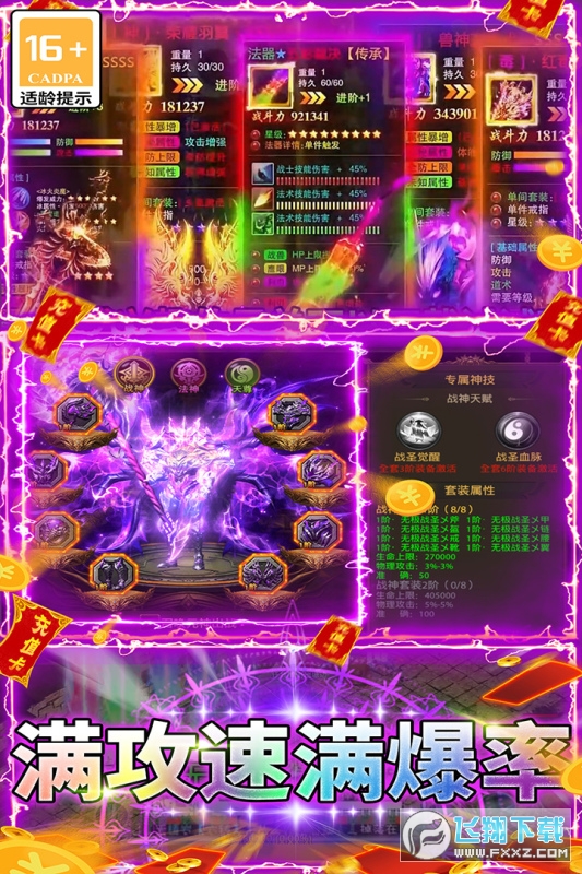 富有的职业角色,每个角色带给玩家不同体验,神兽坐骑绚丽神翼,随心所欲的战斗;