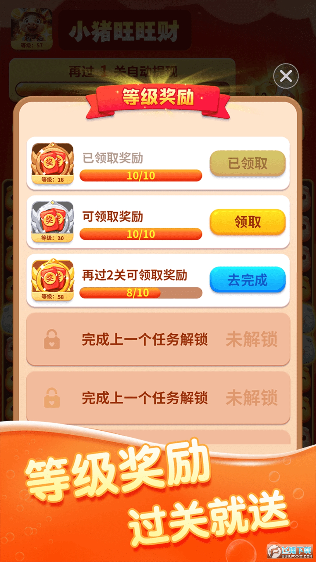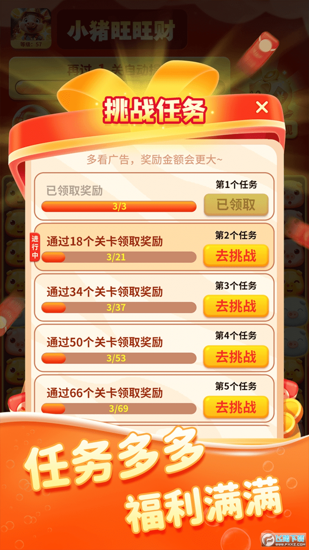小猪旺旺财红包版是一款能够带给玩家欢乐猪猪消除挑战的休闲小游戏,经典的玩法可以在这个世界里进行,多种模式的消除挑战可以带给玩家欢乐的体验,还有着许多创意性的玩法和模式,带来的每一道关卡都有着不同的挑战,难度系数还是很大的。