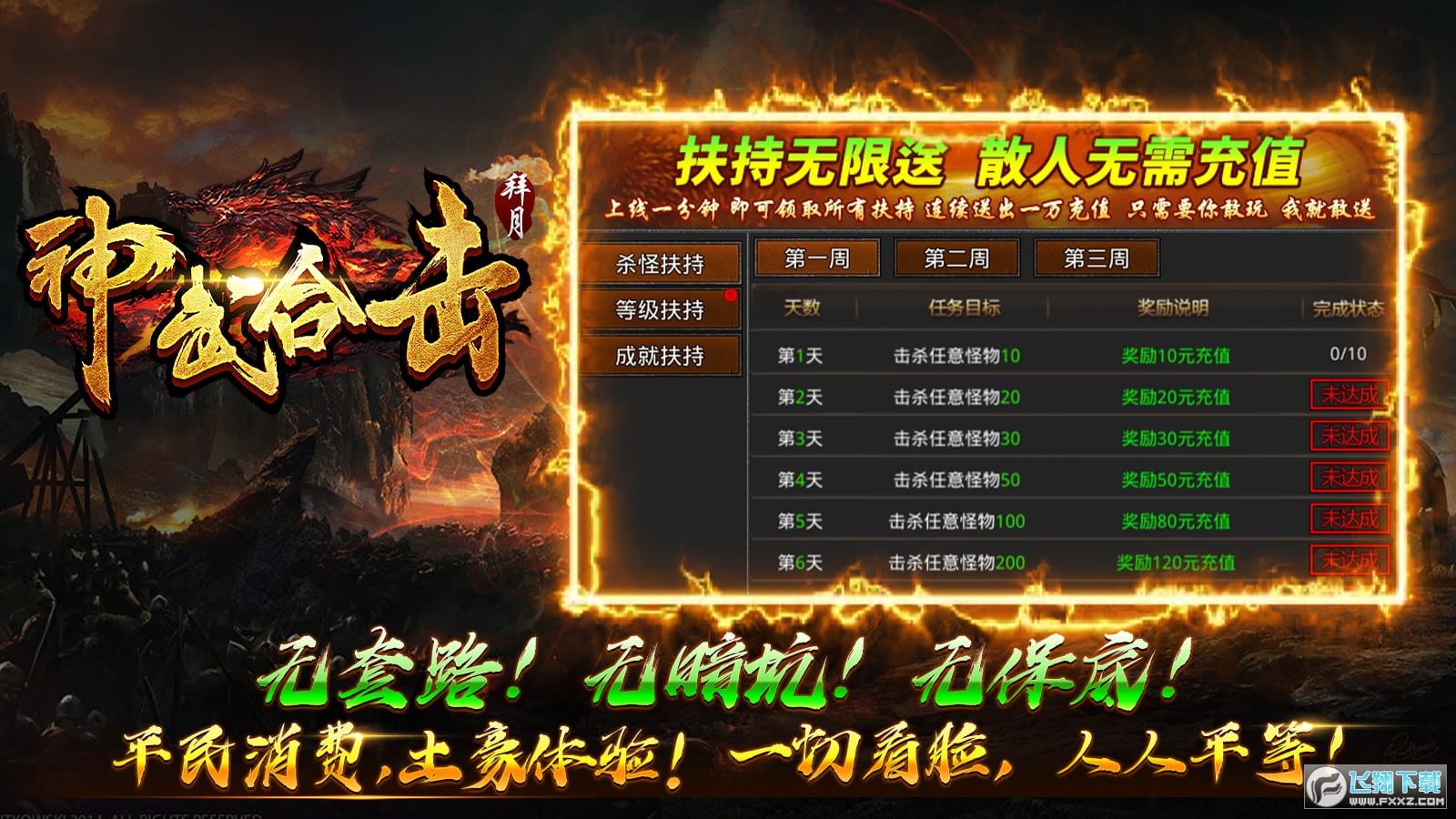 1)三职业英雄合击,全新设计、平衡三职业。