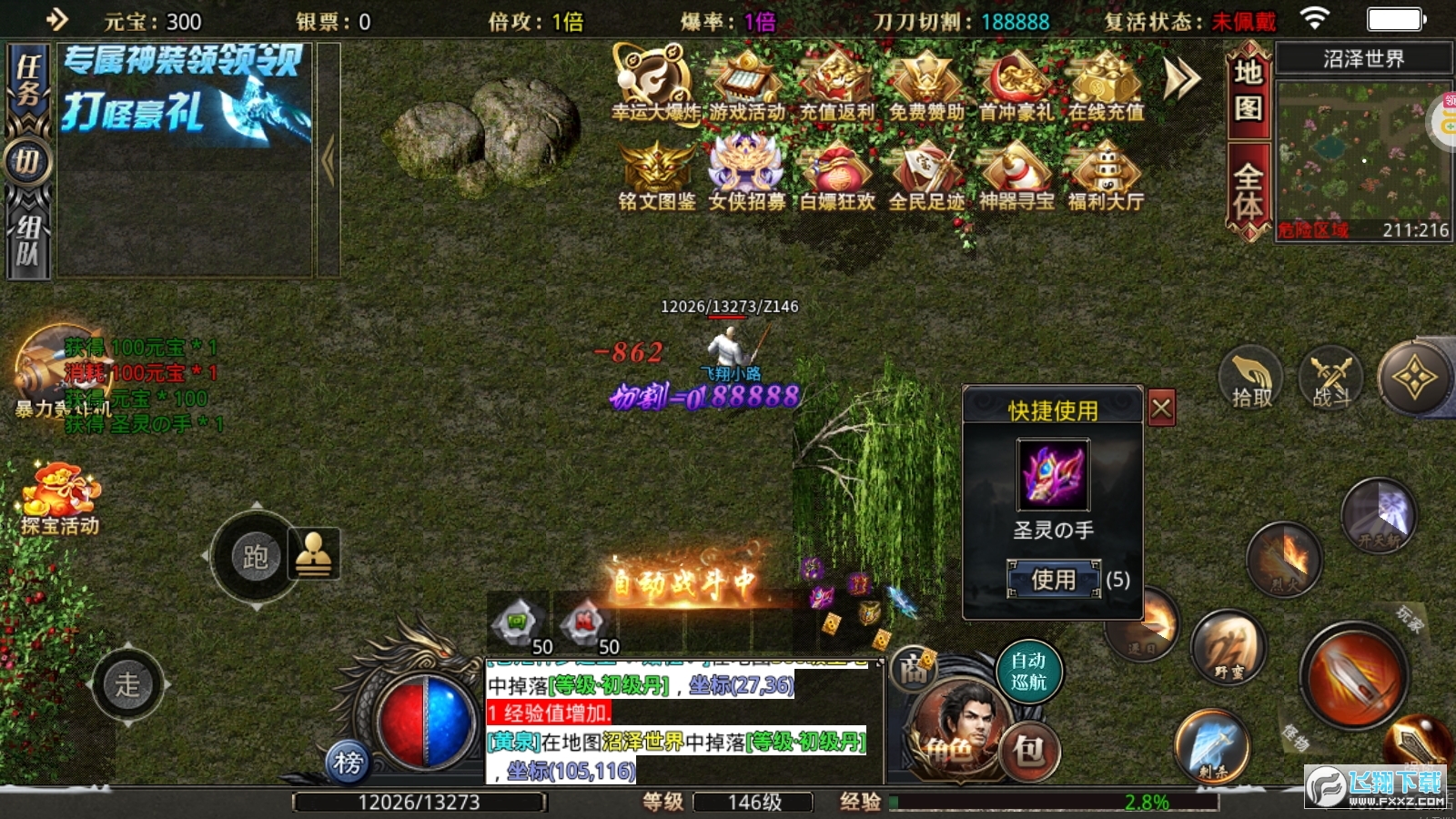 4、野外boss无限刷装备,夺城抢资源,组建公会和好友一起争夺天下,成就万古霸业。