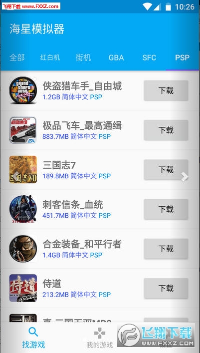 支持导入自己的ROM,也集成了游戏ROM市场,点击下载即可启动游戏。