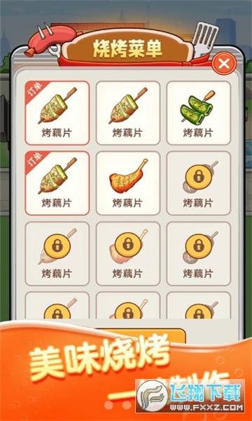 2、烧烤摊可以升级,不同等级的烧烤摊将获得不同的特色,如更多的菜品选择、更豪华的装修等。