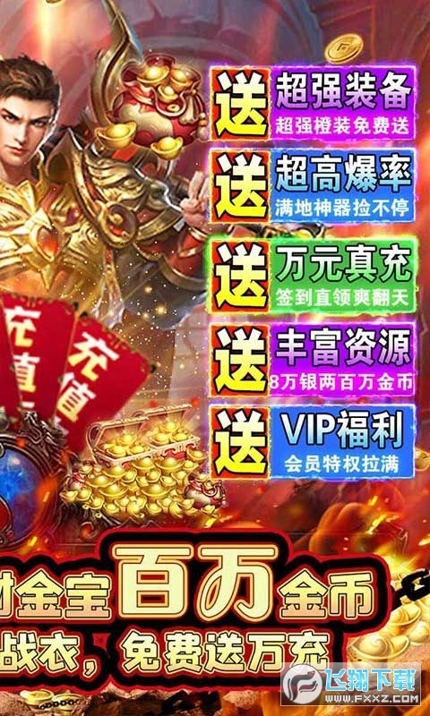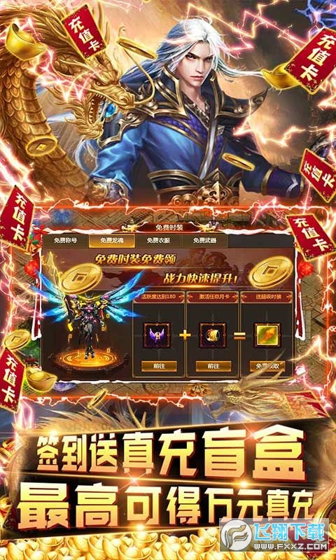 ★创角立送【时装】黄金战衣、【圣宠】招财金宝、绝版称号、真充卡、300万金币