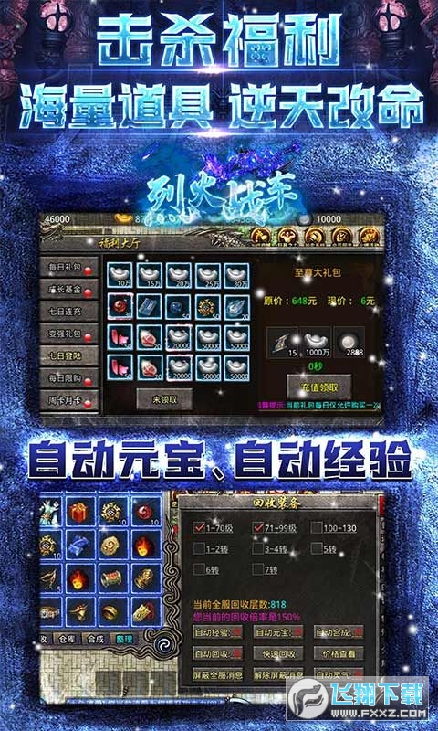 《烈火战车(冰雪1折购)》真白嫖!无限爆灵符!更有至尊大礼包一折购!游戏画面清晰精致打击感实足。完美还原冰雪,原汁原味复刻传奇核心玩法,BOSS夺宝,血战沙城PK,还原经典传奇场景。击杀怪物可领取海量道具,本服无任何绑定限制,自由交易,上线免费送自动挂机、 自动拾取、自动分解,一切全靠爆游戏中获得的灵符,装备,材料,打怪均能掉落!