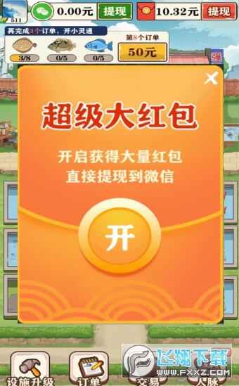 用户通过养殖鱼完成订单,达成主线升级任务,赚取大量,更有多种挑战任务等您挑战、赢得额外奖励。快来强哥的幸福生活,轻松赚钱吧!