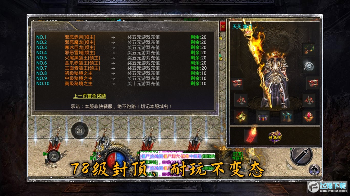 1、大量首爆奖励为你提供,新的精彩不断出现,散人也能逆袭成为世界大佬,有时间就能够称王称霸,简单操作十分耐玩,装备持久保值,自由出售回收;