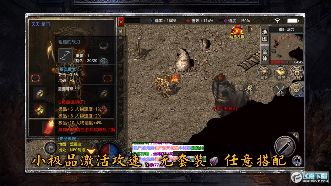 2:战士默认攻速每秒2刀,通过极品加持可以达到每秒4刀