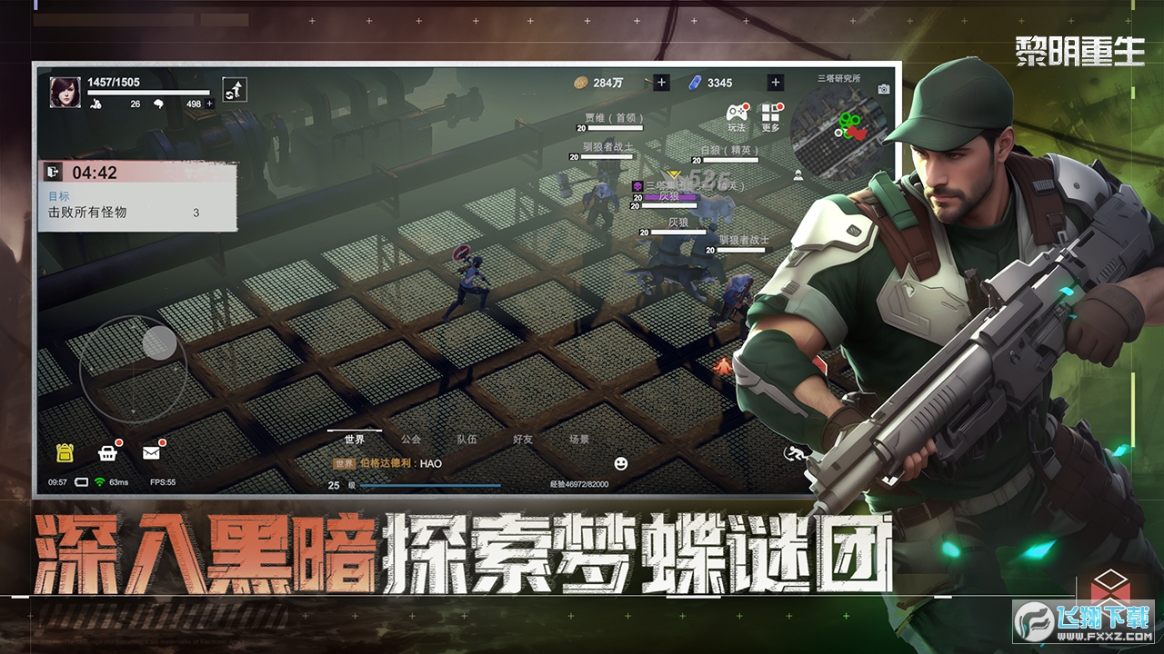 1、驰骋开放的地图战场,迎接不同的boss们,与其他的幸存者们互相合作。