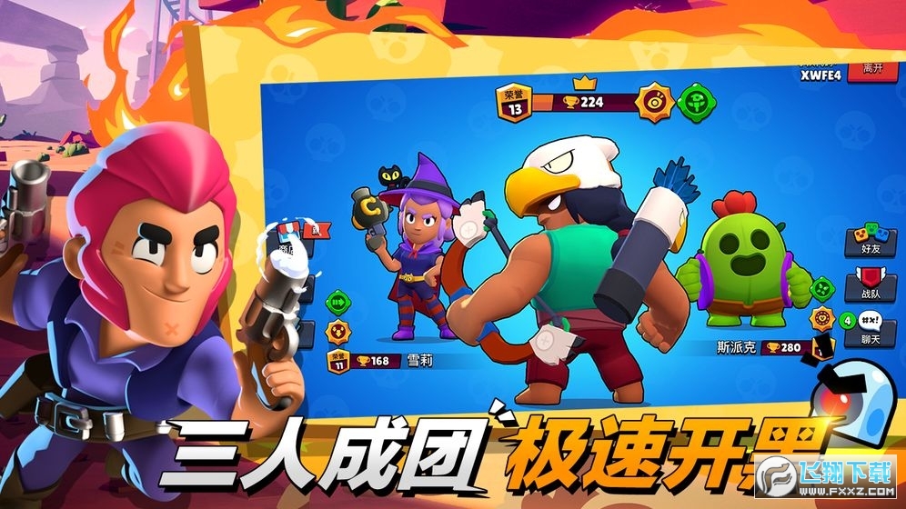 荒野乱斗是一款格斗题材的游戏。具有不同能力的人可以选择各种方式来完成任务,并获得相应的分数的玩法更快的提升。最强大的控制方法需要每个人都参与战斗,可以自由选择小型团队不断提升战斗能力。
