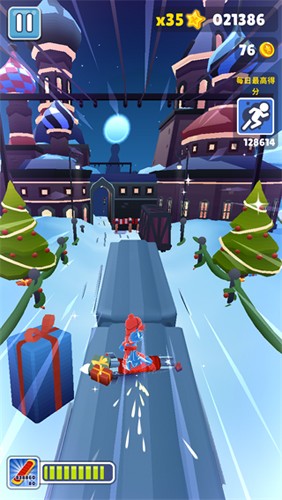 滑板——购买滑板后,在游戏过程中双击屏幕,即可激活滑板,人物承在滑板上进行滑行,并且在有效时间内拥有两条生命。