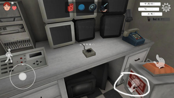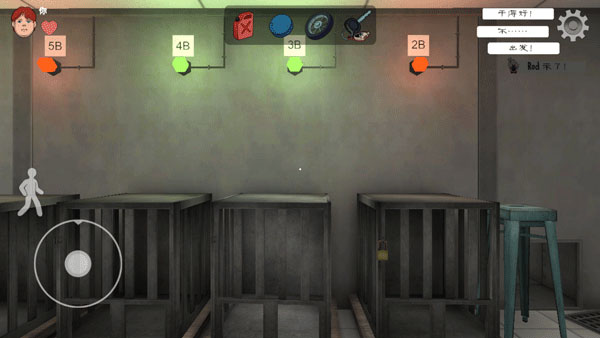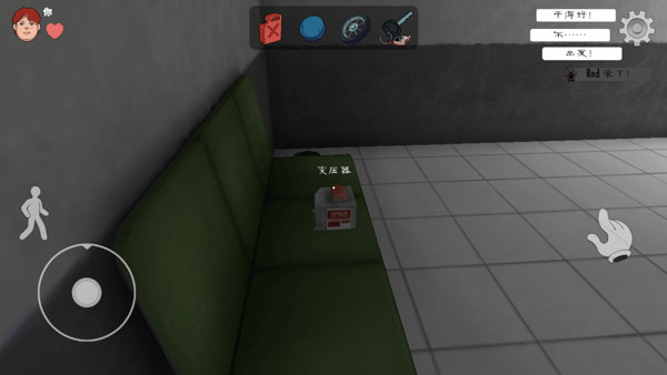 2、玩家需要使用地图中道具逃离这里,点击右边"手"拾取道具,点左边人图标可以下蹲;