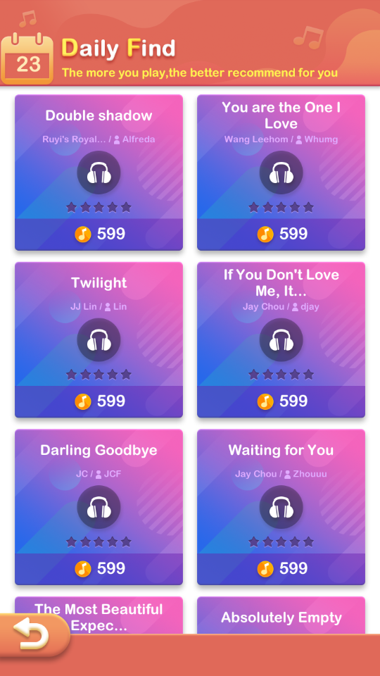梦幻钢琴是一款音乐节奏游戏,玩家可以通过点击屏幕上随着音乐节奏而落下的音符来演奏优美的旋律。游戏内置了大量经典和流行歌曲,从古典音乐到现代流行歌曲。随着玩家技能的提高,可以解锁更高级的赛道和挑战模式。游戏界面设计精致,音符落下时伴随着令人眼花缭乱的特效,为玩家创造了梦幻般的游戏体验。无论您是钢琴爱好者还是音乐游戏迷,梦幻钢琴都能让您在指尖跳跃的音符中找到乐趣!