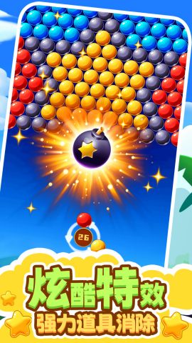 3、物理碰撞效果:泡泡反弹和碰撞遵循真实的物理规则,战略弹射显示出更多的技巧。