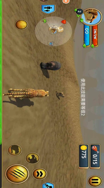 4、通过击败敌人获得经验,升级你的猎豹的生命值,攻击伤害,甚至新的技能。