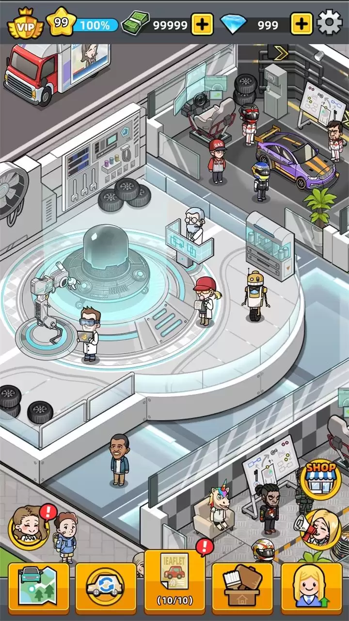 2、通过升级解锁新技能,扩展车库并增加更多店面,使汽车经销商变得越来越大。
