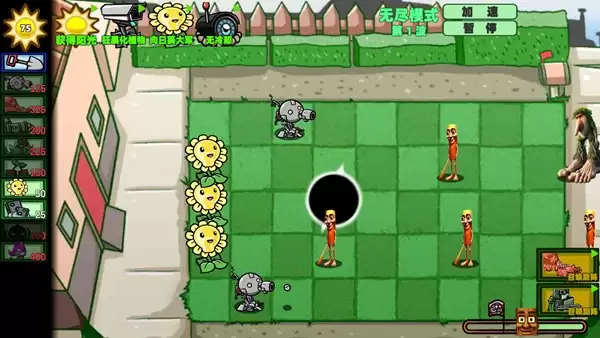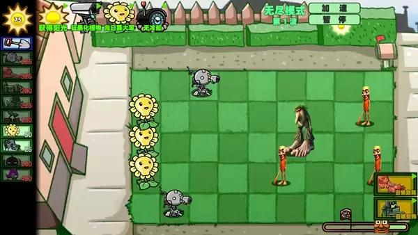 1、进入游戏,关卡特别多,在战场上摆放不同功能的植物,阻挡怪物袭击。