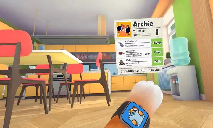 3、屏幕右上角不断闪烁的猫咪手表是每一章节的任务介绍,完成任务后可以获得鱼干奖励,用来解锁后续场景与道具。