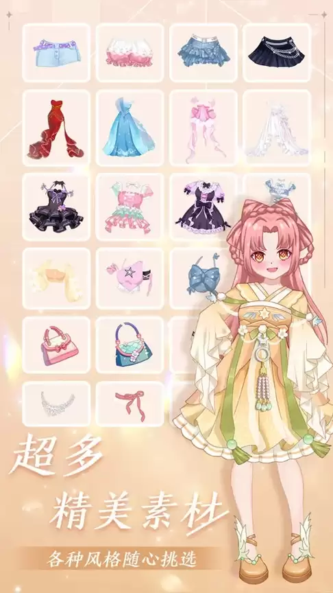 公主梦幻穿搭是一款充满创意和乐趣的时尚设计游戏。在公主梦幻穿搭游戏中,你将变身为一名专业的时装设计师,拥有无限的创意空间和丰富的设计材料,自由搭配,创造出最美丽、最个性化的个性风格,满足你所有的时尚想象。你可以释放你的想象力,创造各种独特而美丽的角色设计。快来加入“公主梦幻穿搭”,开始你的时装设计之旅吧!