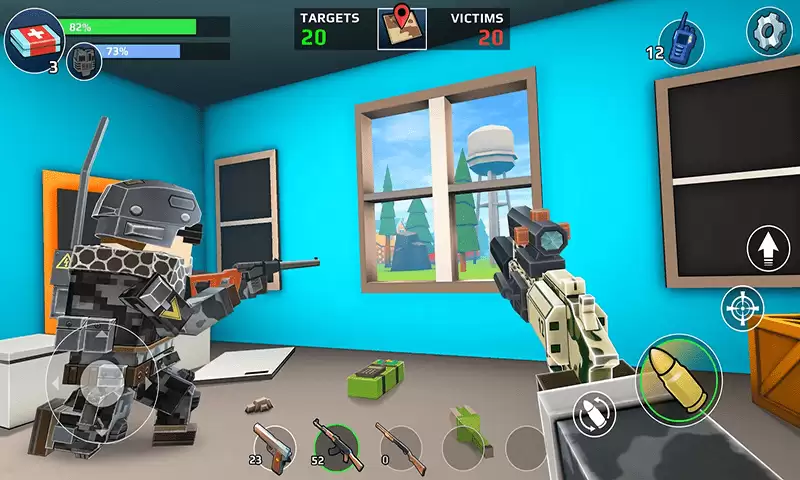 感受独特像素世界中精彩的枪战射击,完成任务。