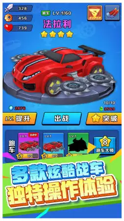 可以根据自己的喜好改装赛车,并添加更具攻击性的道具。