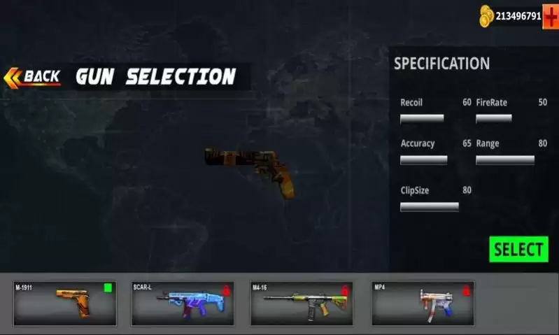 你可以在众多武器中选择你最喜欢的枪,投入紧张刺激的战场,消灭这里的敌人。