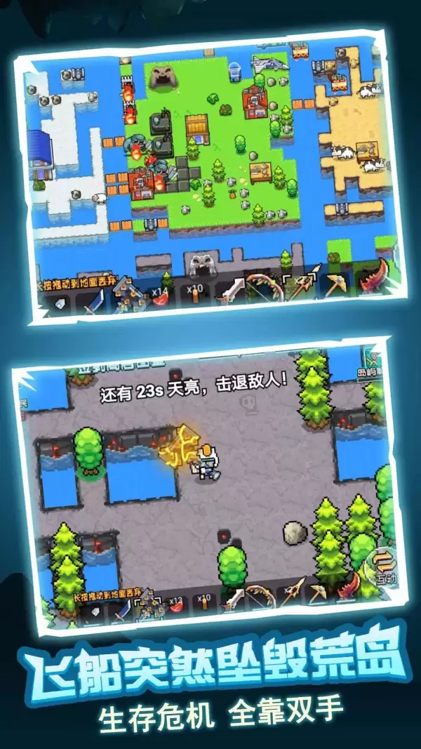 荒岛冒险求生有有趣的操作模式,游戏风格类似饥荒场景设计。