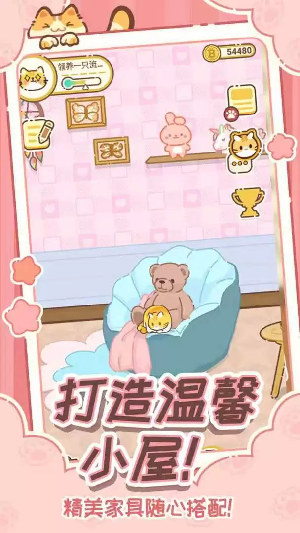 领养一只流浪猫是一款极具魅力的休闲模拟游戏。这款游戏的玩法简单易懂,极易上手,玩家在游戏中的主要任务便是收养形形色色的流浪猫。每一只流浪猫都带着独特的经历与个性,等待着玩家给予它们温暖的新家。一旦决定收养,玩家便需承担起细心照顾它们的责任。从为猫咪精心搭建舒适温馨的猫窝,到操心它们的饮食起居,无论是日常的喂食、喂水,还是处理它们的排泄问题,都需要玩家亲力亲为,事无巨细。