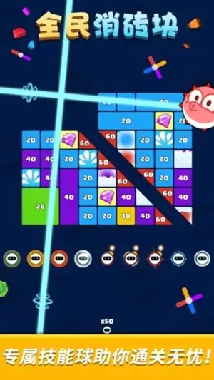 在全民消砖块无限钻石这款游戏中,你可以享受非常自由的游戏玩法,只要你动动手指就可以进行一系列的操作了,在这里你消除的砖块越多,可以获得的分数也就越高哟,你不想来试试吗。