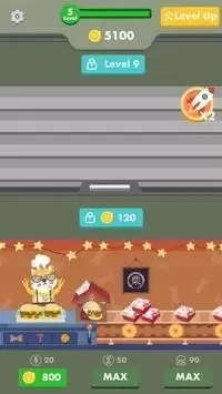 4、运营你的工厂,快速提高汉堡的生产效率,提供外卖服务,扩大市场,赚更多的钱。