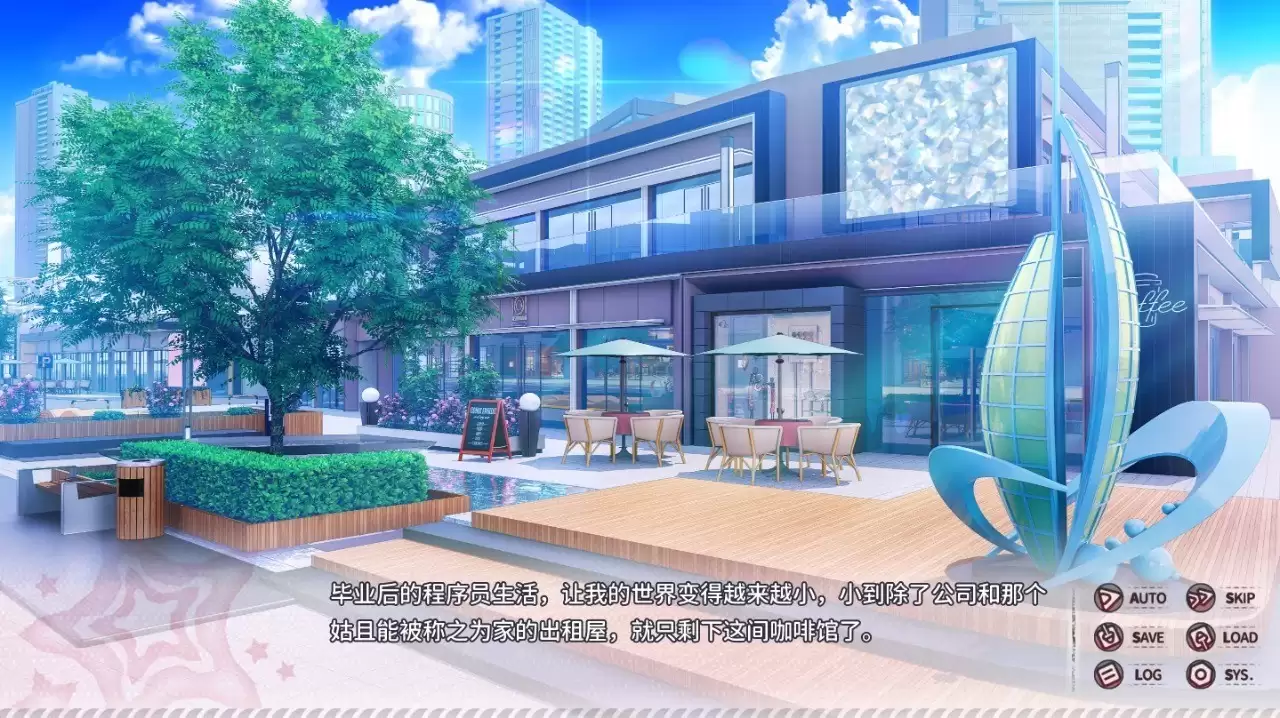 3、玩家将扮演一名刚刚毕业六个月的程序员,通过选项与自由插画家的女主角互动,以实现不同的游戏结局。