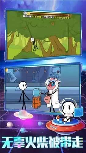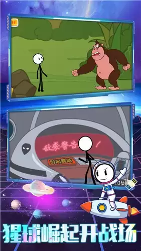 2、火柴人驾驶宇宙飞船进入时空隧道。天空在旋转。火柴人的宇宙飞船直接落在一颗行星上。