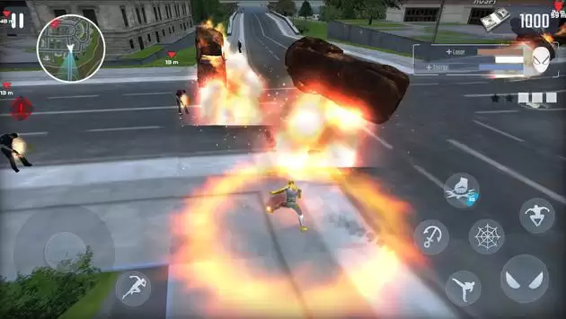 蜘蛛绳索英雄城市之战是能够满足你打击罪犯,成为英雄的一款游戏,你将会在游戏中化身为超级英雄蜘蛛侠,利用你的操作技巧来进行战斗,游戏中的地图非常大,所以你的赶路方式就是利用蛛丝在各个大厦上穿梭,小伙伴赶快来下载试试吧。