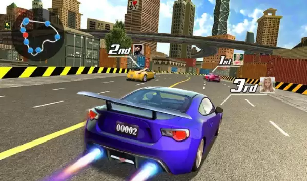 3、在每个轨道的左上角都会有一张小地图。玩家可以从第三人称的角度驾驶和征服赛道。