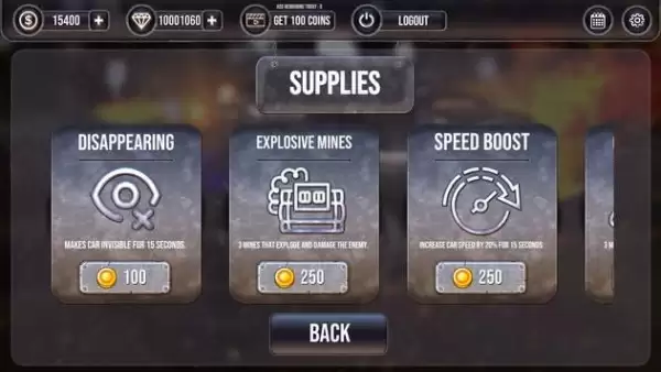你可以安装更强大的武器来增加攻击力并立即摧毁对手的汽车。
