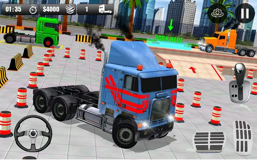 1、操作您的卡车并使用您的技能将车辆安全停放在更多的停车检查站。