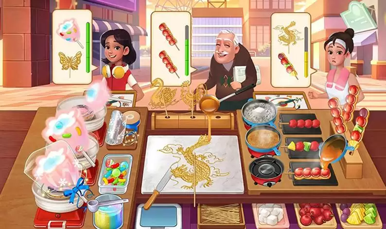 2、根据顾客的需要制作美味的食物,仔细观察,注意不要出错。