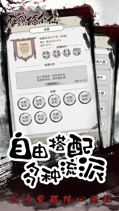 在家修个仙游戏中有着超多的副本来等你挑战,每一个副本能够获得的奖励都有所不同,你可以自由选择挑战,游戏的画面十分精致,而且玩法很自由,没有任何的限制,角色众多,技能天赋各有不同,非常有趣,赶快下载游玩吧