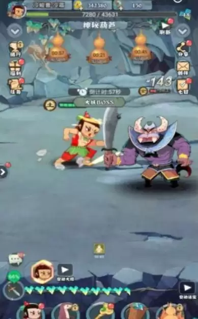 2、放置葫芦娃努力培育葫芦宝宝,提高整体战斗力,确保与邪恶蛇精对抗。