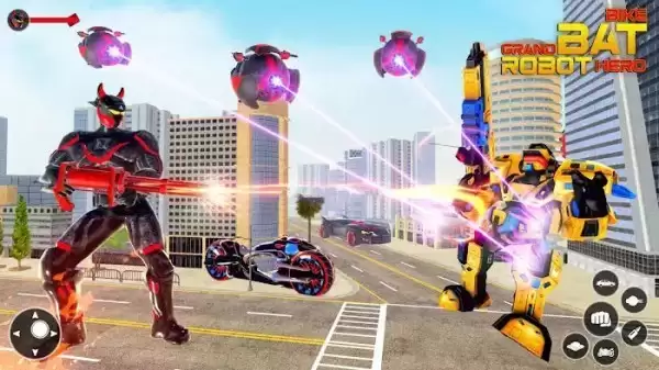 1、蝙蝠机器人大战在这个游戏中开始冒险,操作你的机器人并开始战斗。