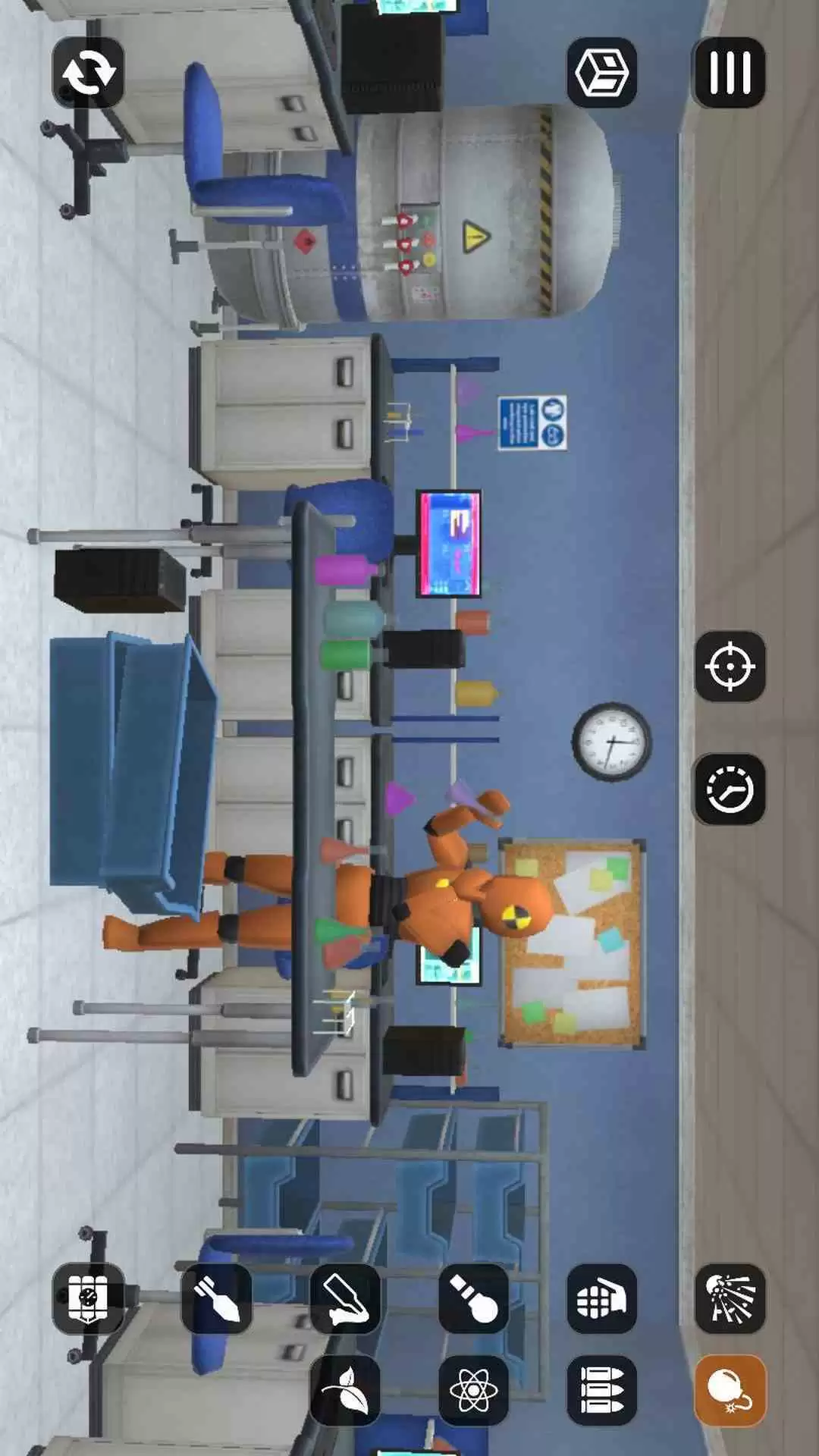 1、中心位置,显示的是瞄准、重力控制,以及时间,右侧内容就比较丰富啦,直观的展示分别是炸弹、子弹、量子和植物,其中在炸弹图标隐藏功能里,分别有不同类型的炸弹可以选择,如手雷、燃烧瓶等。