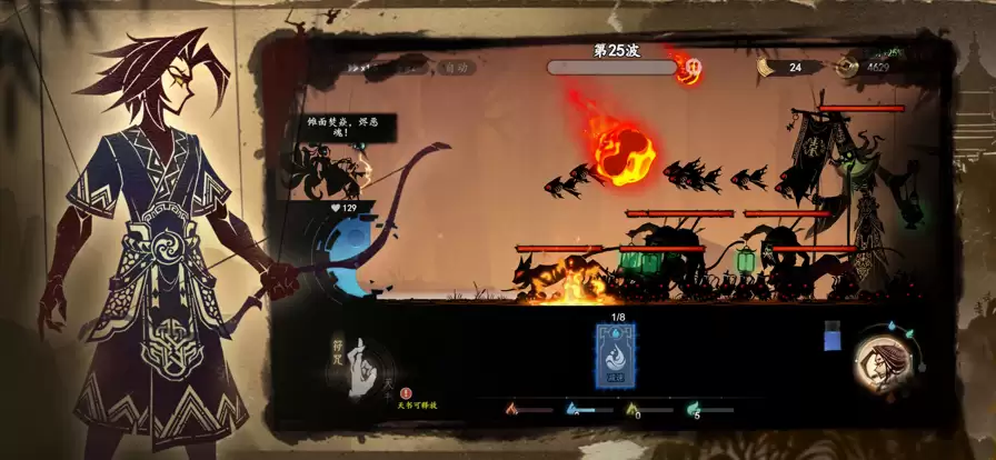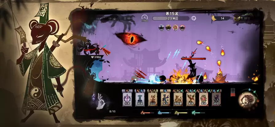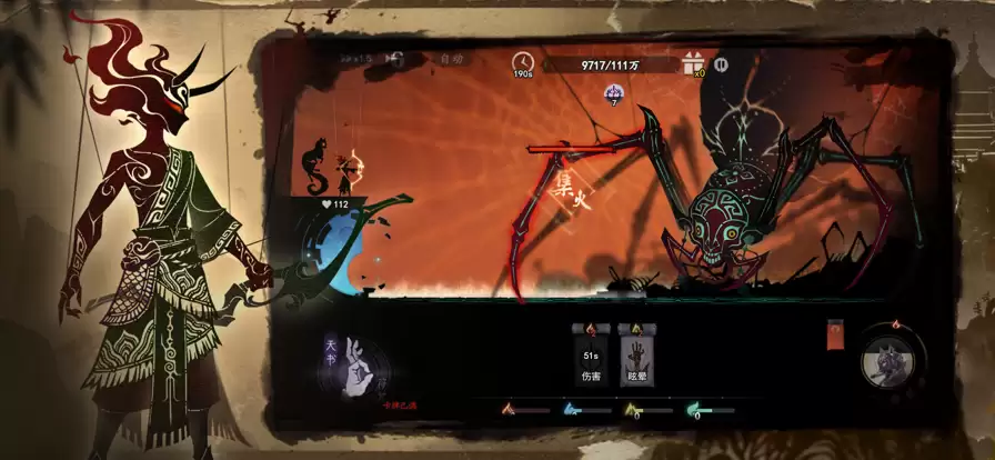 4、每个关卡最后一波次还有强大的首领怪物,玩家可通过局外装备的天书技能,来造成大量伤害。