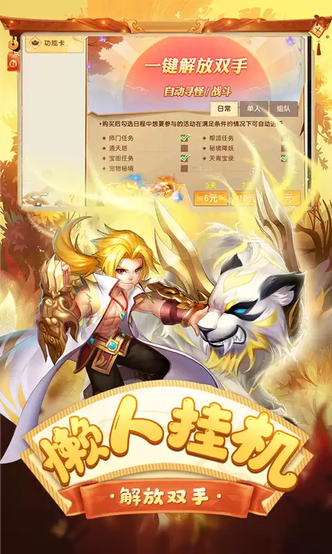 1、各种神技特技特效搭配、无限资源阁战力BUFF、独特伙伴系统等精彩玩法,带您梦回西游世界