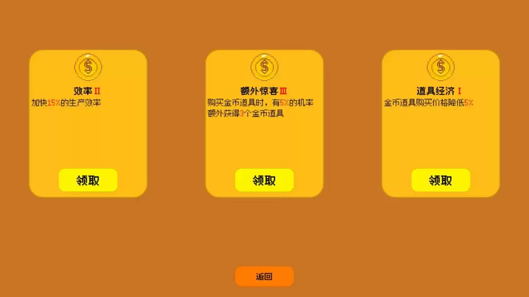3、解锁增益:随着游戏进度,解锁更多增益效果,进一步加速金币的积累。