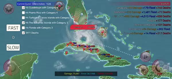 台风模拟器涵盖自由创造、路径预测、灾害管理等核心模式,还有限时生存、无尽毁灭等玩法。 支持单人推演和多人对抗,可以竞争灾害造成的经济损失数值。